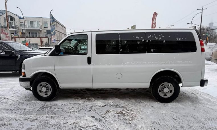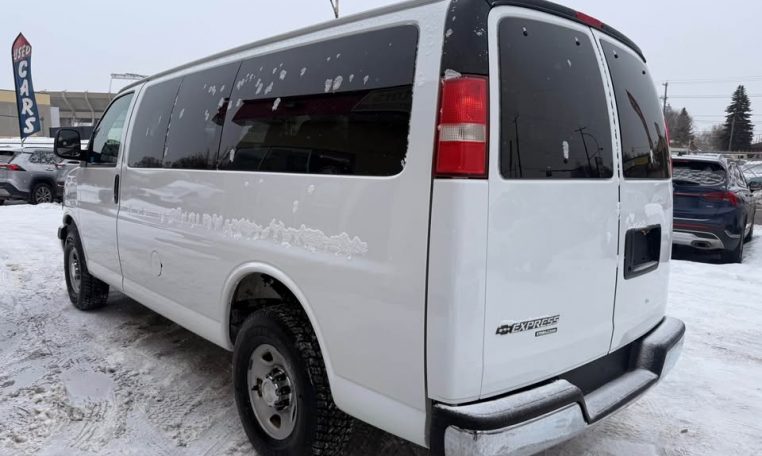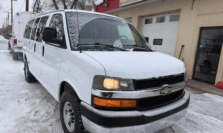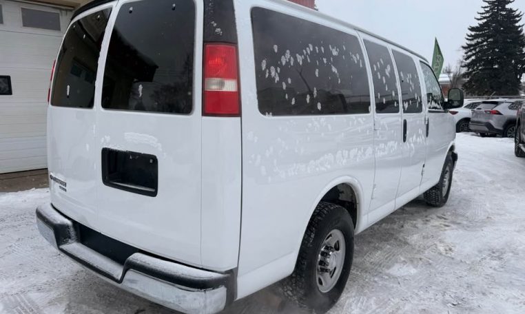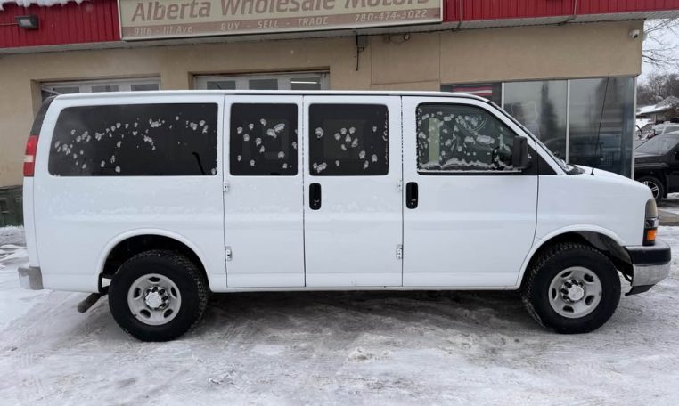 2012 CHEVROLET 3500 LT EXPRESS 12 PASSENGER VAN 1 OWNER LEASE BACK 6.0 LITRE V8 6 SPEED AUTOMATIC TRANSMISSION AIR TILT CRUISE AM FM SAT CD STEREO HANDS-FREE CALLING REAR AIR & HEAT POWER WINDOWS POWER LOCKS TINTED GLASS CARFAX WARRANTY FINANCING AVAILABLE CALL OR VISIT ALBERTA WHOLESALE MOTORS 9116-111 AVE 780 474-3022 OR TEXT 780 970-2526