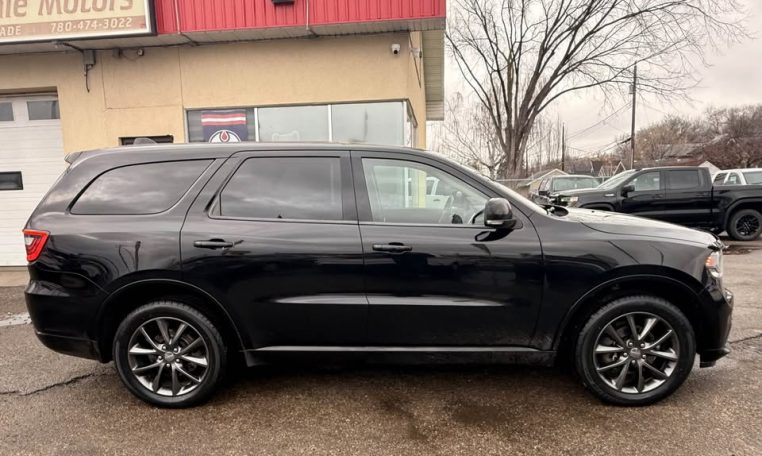 2018 DODGE DURANGO GT ALL-WHEEL DRIVE  7 PASSENGER 3.6 LITRE V6 8 SPEED AUTOMATIC TRANSMISSION FULLY LOADED LEATHER SUNROOF FULL OPTIONS BRAND-NEW ROTORS NEW BRAKE PADS NEW TIRES NEW BATTERY NEW SPARK PLUGS TINTED GLASS ROOF RACK ALLOY WHEELS REMOTE STARTER  CARFAX WARRANTY FINANCING AVAILABLE CALL OR VISIT ALBERTA WHOLESALE MOTORS 9116-111 AVE 780 474-3022