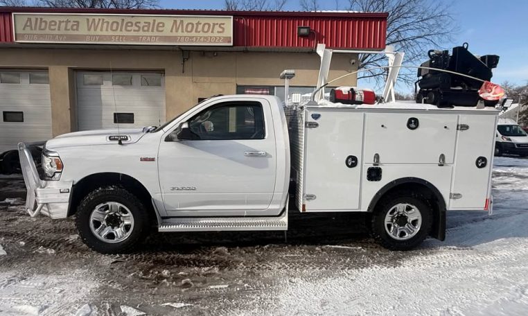 2019 RAM BIG HORN 2500 HEAVY DUTY 4X4 SERVICE TRUCK 8 FT ALUMINUM SERVICE BOX MANUFACTURED BY TRUCK WEST INCLUDES COMPRESSOR AIR REEL HEATED DRAWERS WORK LIGHTS 1 OWNER LEASE BACK 6.4 LITRE HEMI V8 8 SPEED AUTOMATIC TRANSMISSION AIR TILT CRUISE POWER WINDOWS POWER LOCKS AM FM SAT STEREO HANDS-FREE CALLING POWER SEAT FOG LIGHTS BACK UP CAMERA REMOTE STARTER VERY CLEAN AND READY TO WORK MANY MORE SAFETY OPTIONS COMES INSPECTED CARFAX WARRANTY FINANCING AVAILABLE CALL OR VISIT ALBERTA WHOLESALE MOTORS 9116-111 AVE 780 474-3022 TEXT 780 970-2526