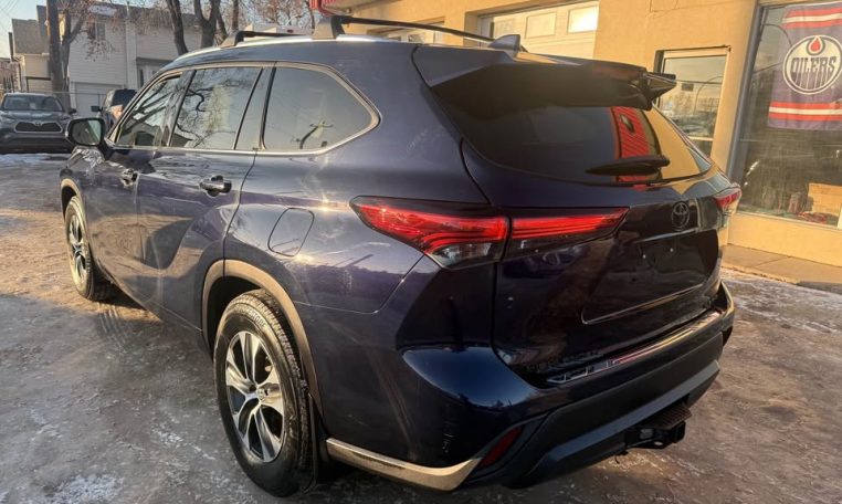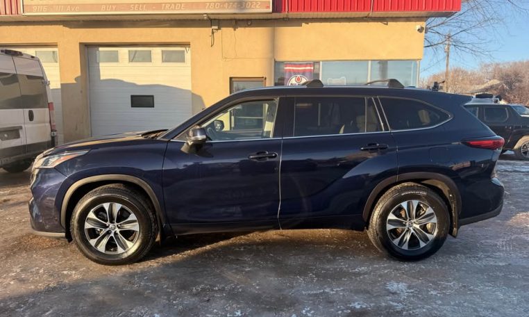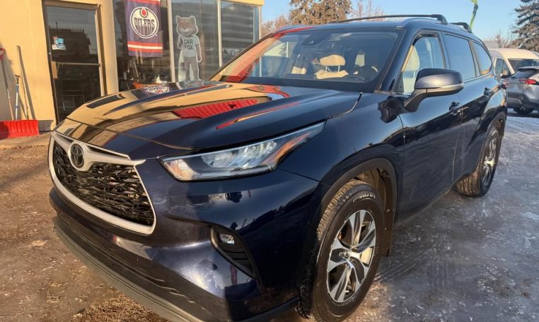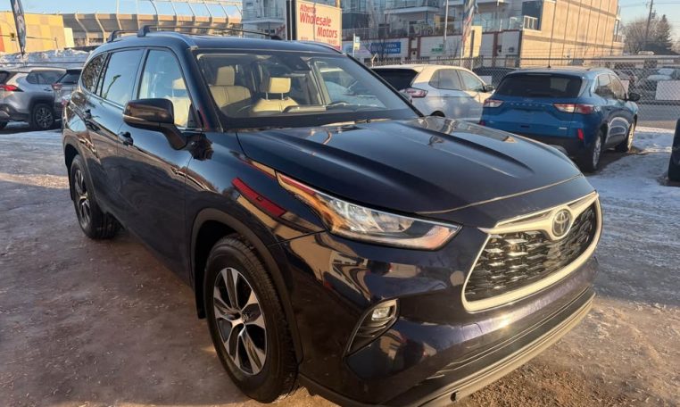 2021 TOYOTA HIGHLANDER XLE ALL-WHEEL DRIVE. 1 OWNER LEASE BACK 8 PASSENGER LEATHER SUNROOF 3.5 LITRE V6 8 SPEED AUTOMATIC AIR CONDITION REAR AIR @ HEAT ADAPTIVE CRUISE TILT POWER WINDOWS POWER LOCKS POWER SEAT HEATED SEATS AM FM SAT STEREO BACK UP CAMERA HANDS-FREE CALLING BLIND SPOT MONITORING LANE CONTROL APPLE OR ANDROID TINTED GLASS ALLOY WHEELS TRAILER TOW PKG ROOF RACK LOTS OF SAFETY FEATURES COMES INSPECTED CARFAX WARRANTY FINANCING AVAILABLE VERY CLEAN SUV CALL OR VISIT ALBERTA WHOLESALE MOTORS 9116-111 AVE 780 474-3022 TEXT 780 970-2526