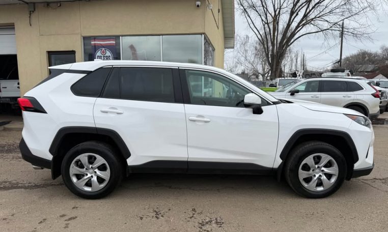 2023 TOYOTA RAV4 ALL WHEEL DRIVE 1 OWNER LEASE BACK 2.5 LITRE 8 SPEED AUTOMATIC AIR CONDITION TILT CRUISE AM FM STEREO USB BLIND SPOT MONITOR ADAPTIVE CRUISE HEATED SEATS POWER WINDOWS POWER LOCKS BACK UP CAMERA REAR CROSS TRAFFIC ALERT TINTED GLASS HANDS-FREE CALLING COMES INSPECTED CARFAX WARRANTY FINANCING AVAILABLE VERY NICE SUV CALL OR VISIT ALBERTA WHOLESALE MOTORS 9116-111 AVE 780 474-3022 OR TEXT 780 970-2526